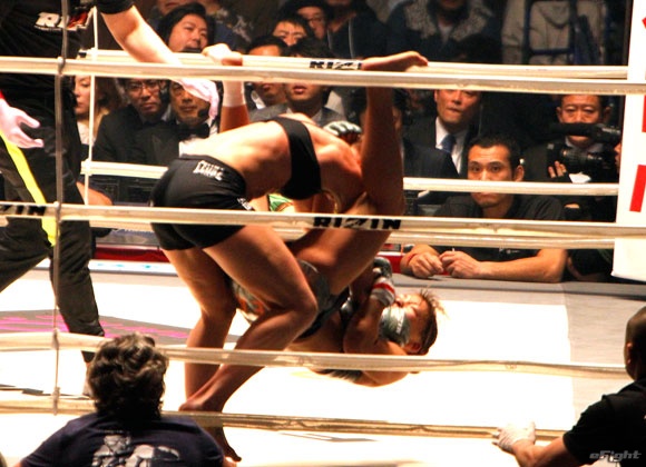 2015年の大晦日、MMAデビュー戦で飛びつき十字を決めたRENA