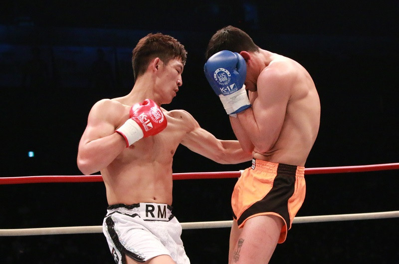 強烈な左ボディを叩き込む野杁