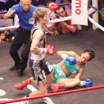 前回、海は堀口にこのクロスカウンターでダウンを奪い、1RKO勝利