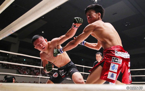 朝倉海に左ストレートをヒットさせる堀口=昨年8月