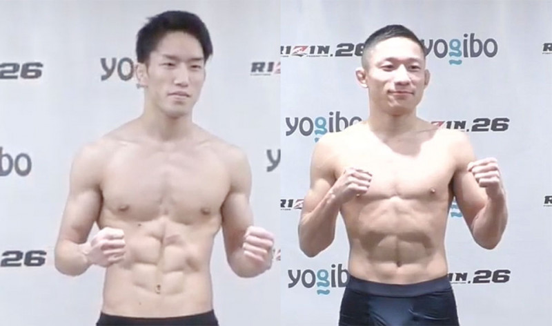 無事に計量パスした朝倉海(左)と堀口恭司(右)(c)RIZIN FF