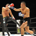剛打でRISE王者・ベイノアからダウンを奪う緑川=今年7月