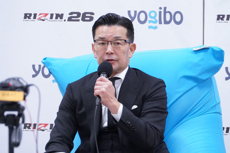 囲み取材に応じた榊原CEO