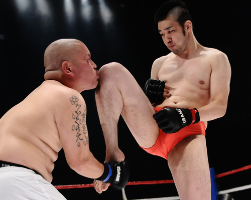 2011年7月、膝蹴りでKO勝ちするシバター(アウトサイダーにて)