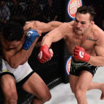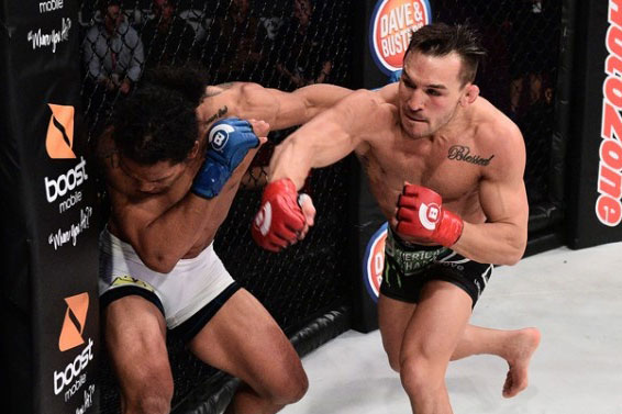 ヘンダーソン(左)に右ストレートを叩き込むチャンドラー(右)©️Bellator MMA