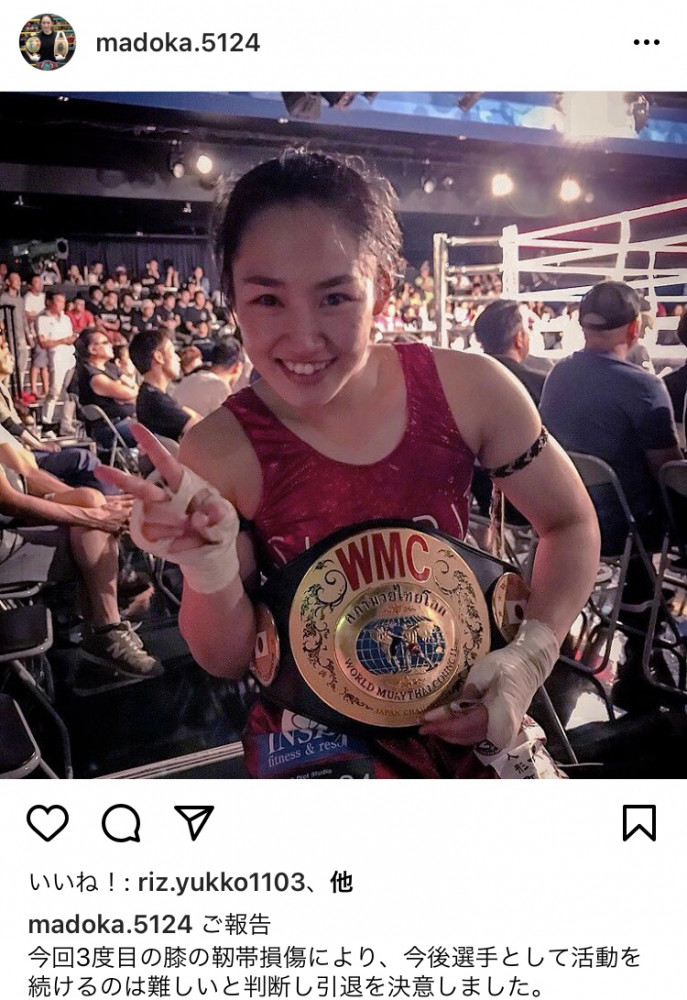 自身のインスタグラムで引退を表明した陣内 @madoka.5124 より