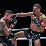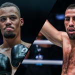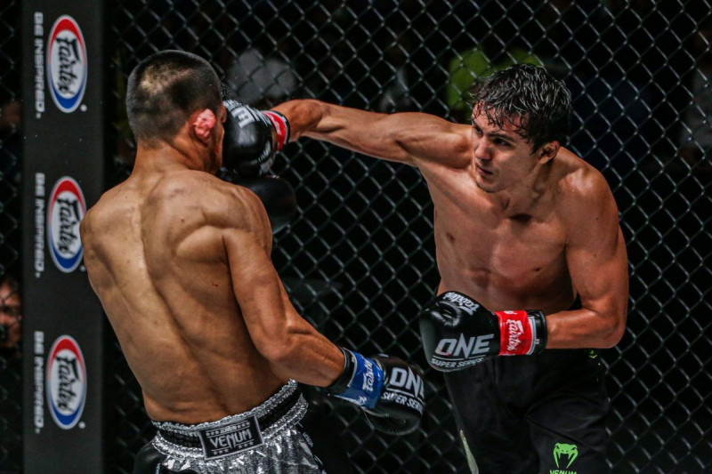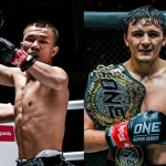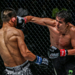 左ロングフックを顔面直撃させる王者・ラマザノフ