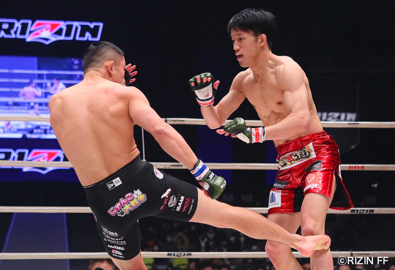 堀口のカーフキックのダメージが心配されていた朝倉海(右)
