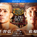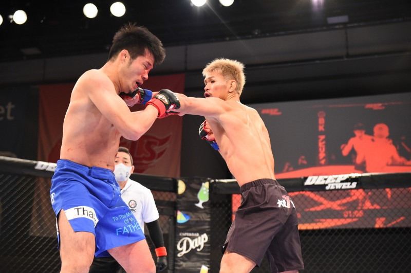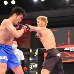 悠太(左)に強烈な左ストレートをクリーンヒットさせる阿部(右)