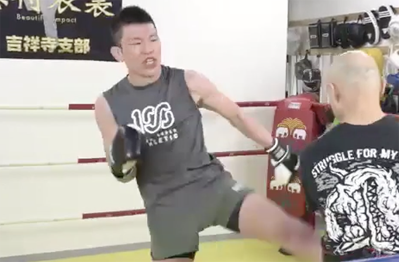 公開練習で重たい蹴りをミットに叩き込む青木©️ONEChampionship