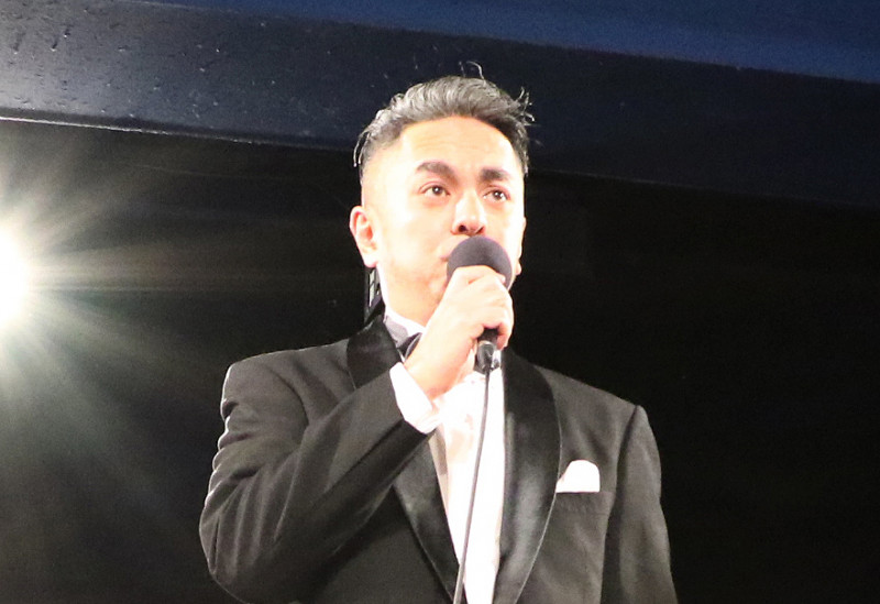 久しぶりのリングアナ姿を見せた宮田プロデューサー「宮田の声は生で聞くのが一番いいよ」と来場を呼びかけ