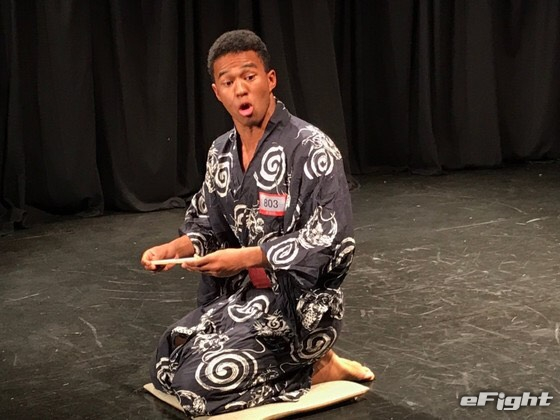浴衣姿で漫談するベイノア、2019年『R-1ぐらんぷり』にて。