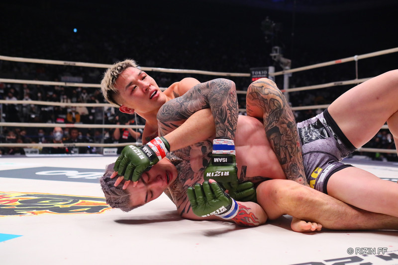 萩原にバックを取られる平本