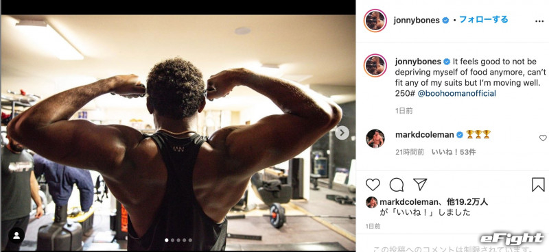 ヘビー級挑戦に向けて身体改造するジョーンズ(自身のSNSより)