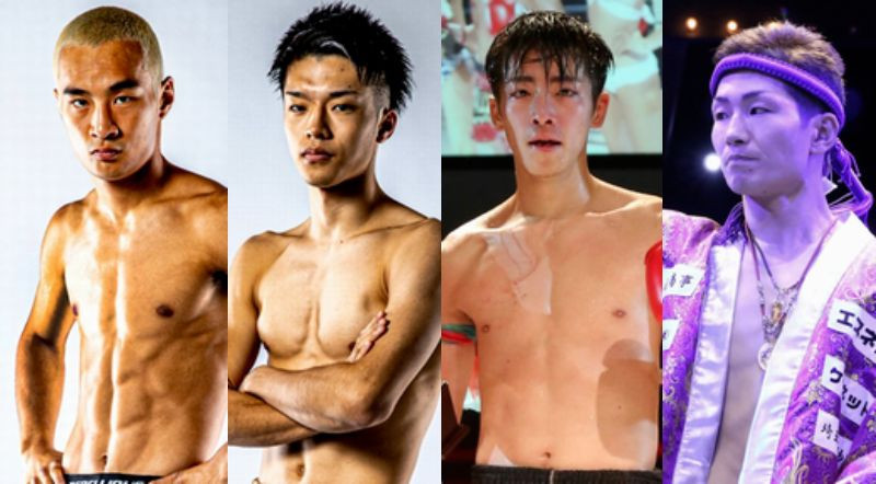 55kg賞金トーナメント出場の4選手がインタビュー、左から加藤、岩浪、壱、元山の4人の王者たち