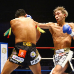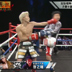 右フックを放つ安保(右)