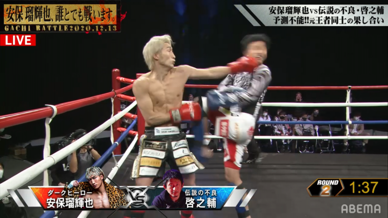 安保の狙いすました左フックが啓之輔にクリーンヒット