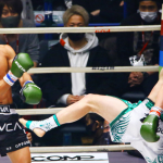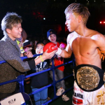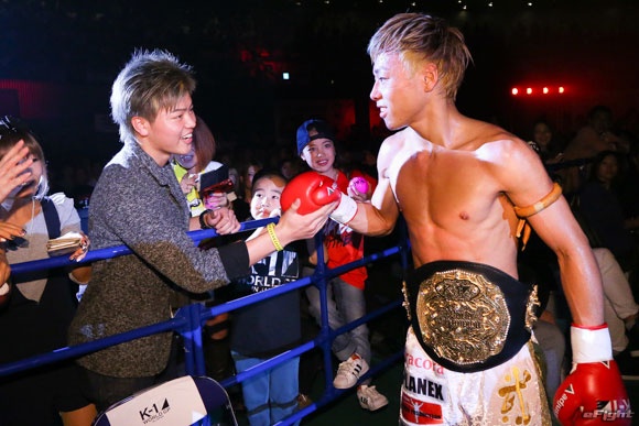 15年11月のK-1、花道で待ち構えていた那須川(左)が武尊(右)に対戦を直訴。あれから5年だ