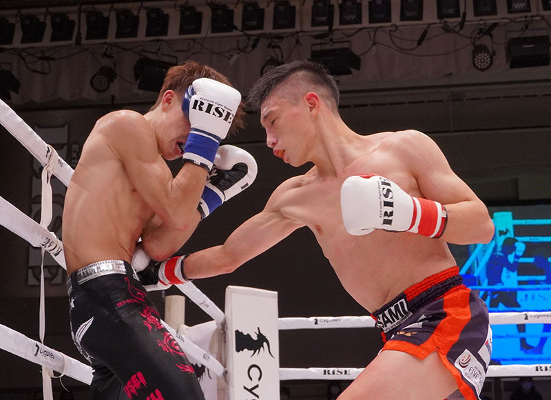 SB王者・川上に強烈なボディフックをめり込ませる大﨑=昨年11月