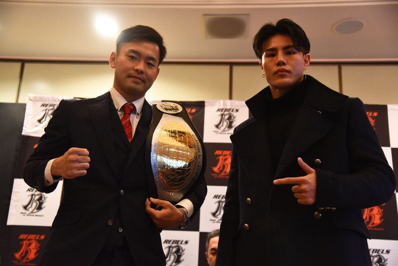 REBELS-BLACK スーパーウェルター級タイトルマッチで対戦する日菜太(左)と海人(右)