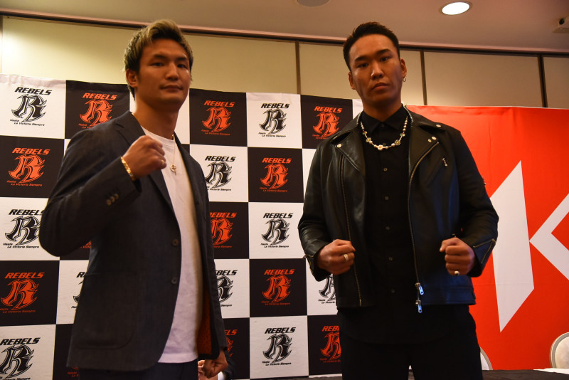スーパーミドル級トーナメント準決勝で対戦する松倉信太郎(左)と小泉竜(右)