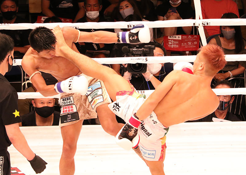 得意のハイキックをヒットさせる良星