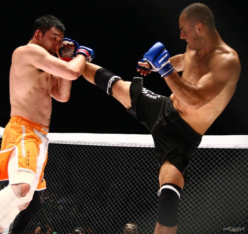 ハレック・グレイシーと対戦する桜庭(左)=2010年5月