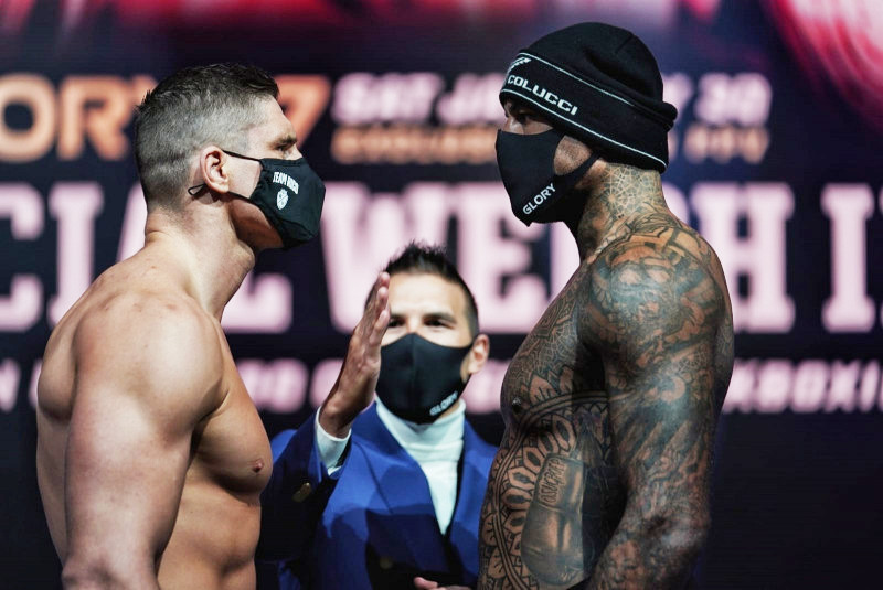 前日計量、ヘビー級T初戦で対戦する現ヘビー級王者ヴァーホーベン(左)とゲルゲス(右)©️GLORY