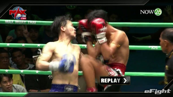 このボディブローでKO勝利する国崇(19年2月のMAXムエタイ)