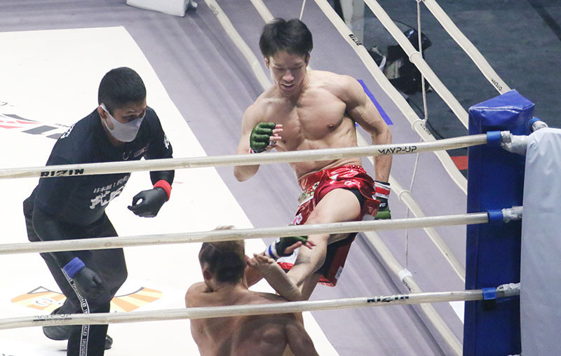 朝倉海の上段への蹴りでKO負けした扇久保(20年8月)
