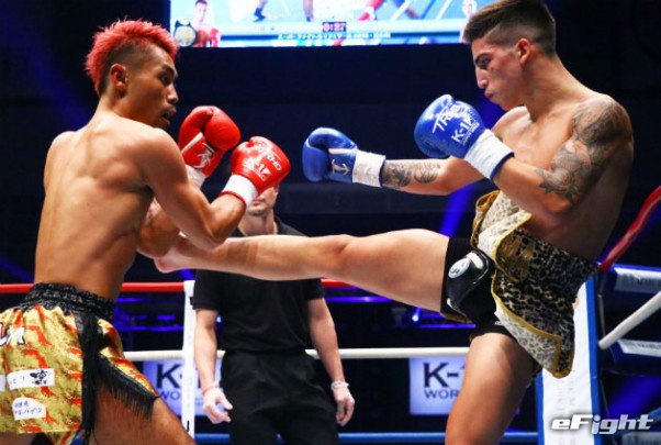 村越優太に勝利を収めたリーバス(右)