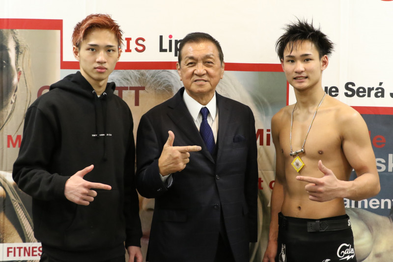 兄弟揃って勝利を収めた笠原兄弟がシーザー武志代表に勝利を報告