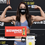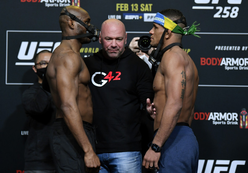 前日計量後のフェイスオフ、王者ウスマン(左)とバーンズ(右)©Getty Images/UFC