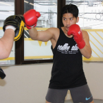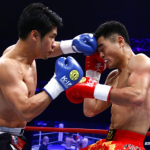18年3月、KO勝利で二階級制覇を達成した時の卜部功也(左)