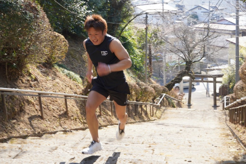 栃木県の地元“パワースポット”大田原神社で階段ダッシュする蓮實光©️K-1