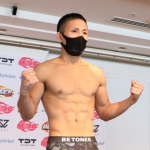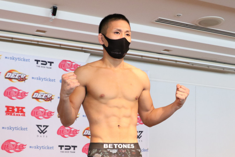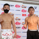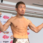 元谷が計量パスし、見事な肉体でマッスルポーズ