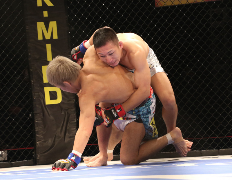 想定通りという打撃からの寝技で昇侍を攻める元谷