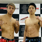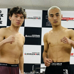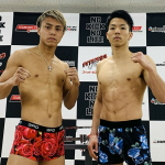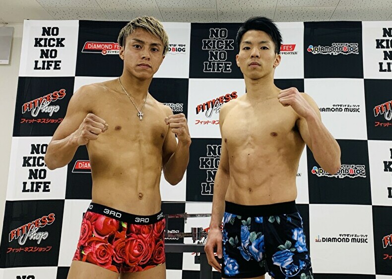 インナーの色が赤コーナーと青コーナー、同じバラの柄と運命的な偶然の石井(左)と麗也(右)