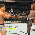 アデサニヤ(右)に顔面前蹴りををもらうコスタ(左)まさかの二日酔いを告白
