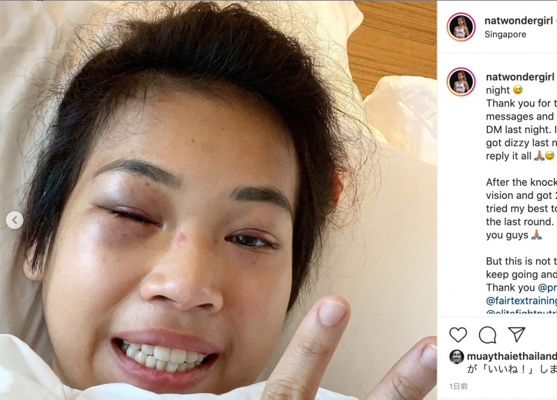 試合後、ダブルビジョン、顔面骨折を明らかにしたワンダーガール(自身の公式SNSより)
