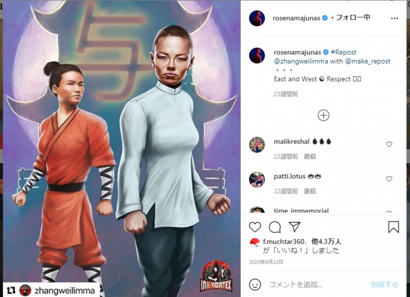 ウェイリー(左)とナマユナス(右)が武道着を身につけ東西武道家対決を示唆した画像 @rosenamajunas