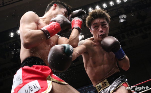 対するKING強介(右)18年10月の瑛作戦で、激闘する二人。