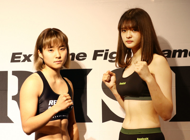 前回の対戦で計量をパスしたAKARI(右)と宮﨑(左)