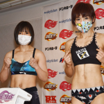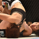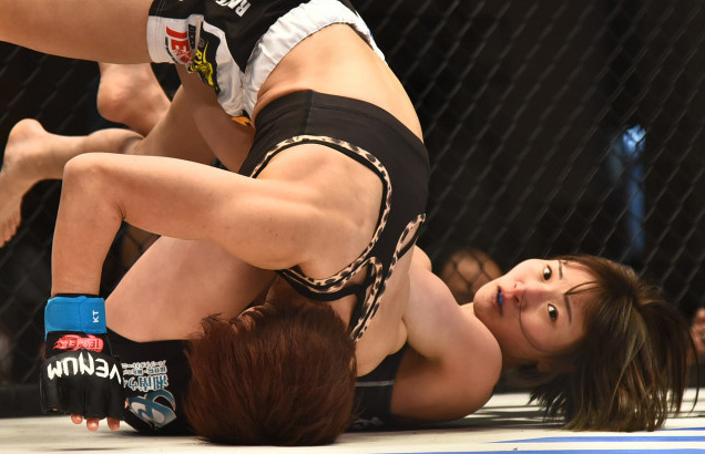 腕を取りながら、富松を後方に回す大島沙緒里