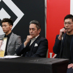 会見に出席した(左から)バズーカ、KNOCK OUT宮田プロデューサー、大谷