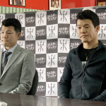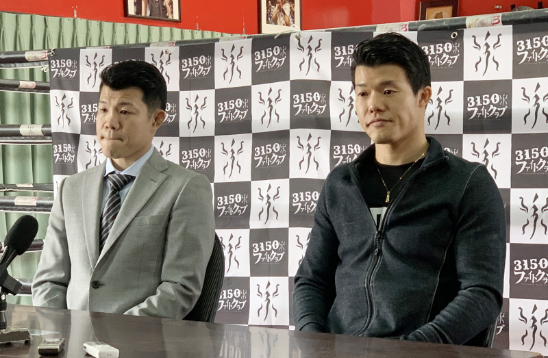 会見で兄・興毅と並ぶ亀田和毅(右)