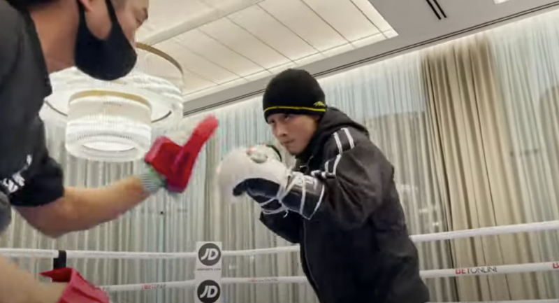 京口が前日計量を前に水抜きトレーニング。サウナスーツと毛糸のキャップに身を包みミット打ち(京口紘人チャンネル「-1.7キロ減量水抜きトレーニング【計量前日】」