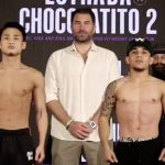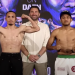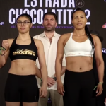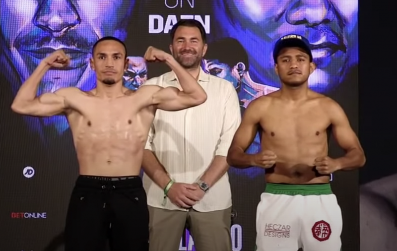 ロマゴンとエストラーダも計量をパスしマッスルポーズを決める(C)DAZN