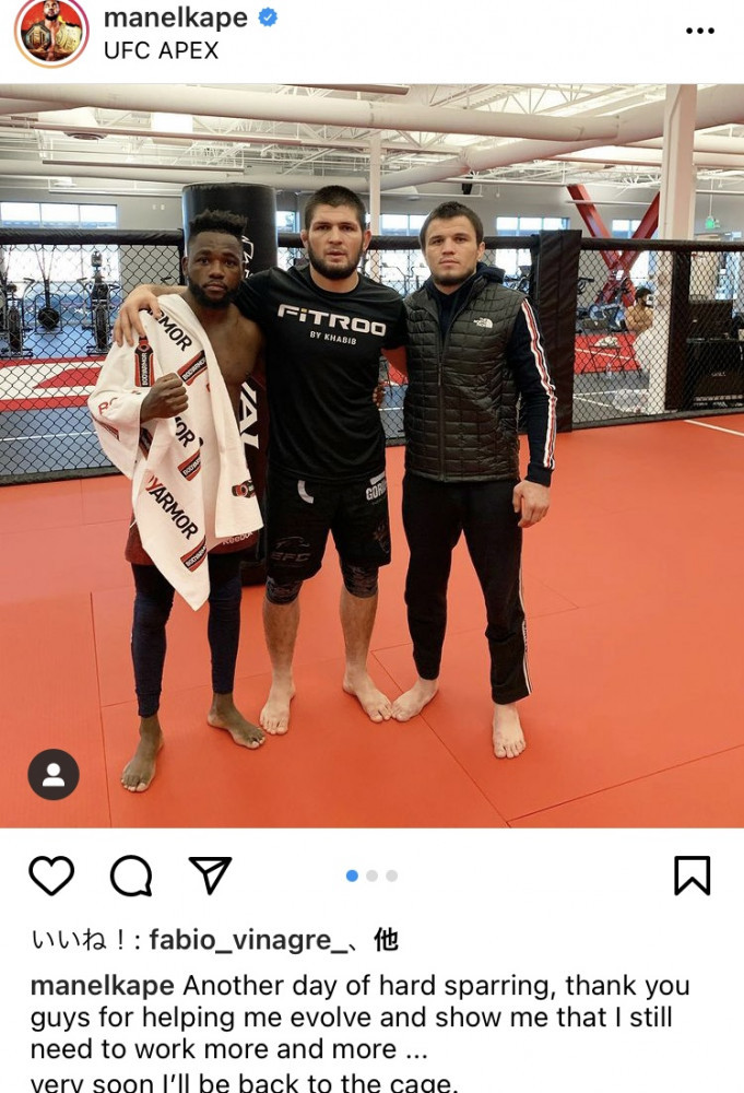 ヌルマゴメドフ(中央)と写真に収まるケイプ @manelkape