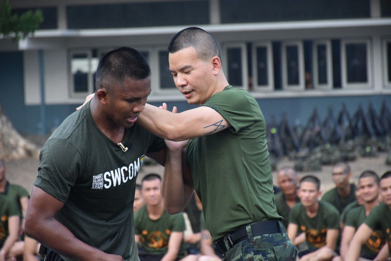 詳細な技術までも訓練生に伝えるブアカーオ(左)©️Special Warfare School
